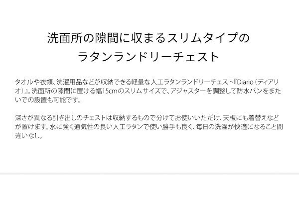 タオルや衣類、洗濯用品などが収納できる軽量な人工ラタンランドリーチェスト『Diario(ディアリオ)』。