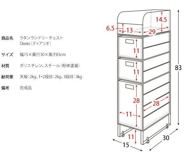 ラタン調 ランドリーチェスト Diario ディアリオ 幅15cm すき間収納 ランドリーバスケット サニタリー収納【送料無料】