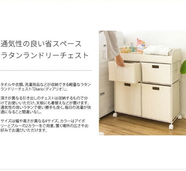 タオルや衣類、洗濯用品などが収納できる軽量なラタンランドリーチェスト『Diario(ディアリオ)』。