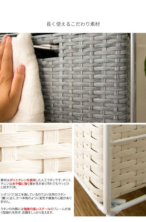 通気性の良いラタンで使い勝手も良く、毎日の洗濯が快適になること間違いなし。