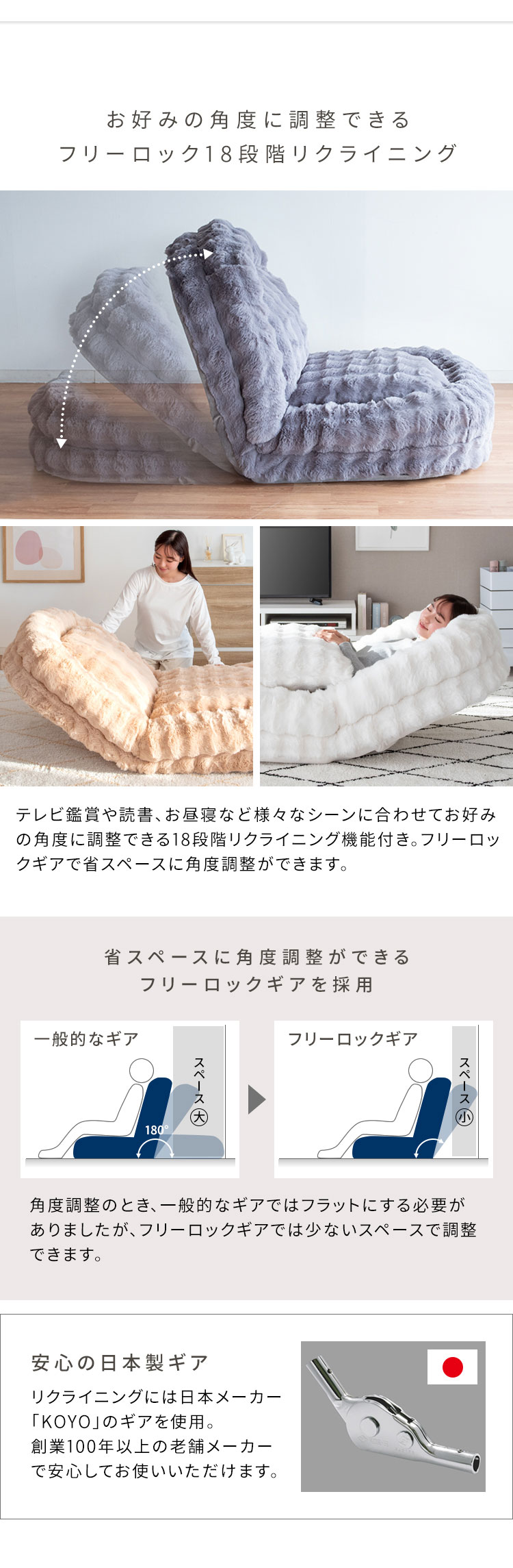18段階フリーロックリクライニングでお好みの角度に調整可能。