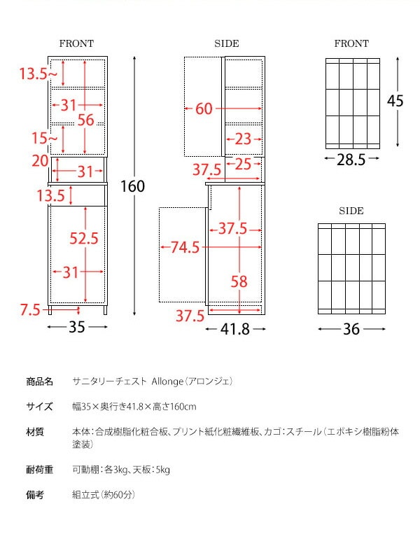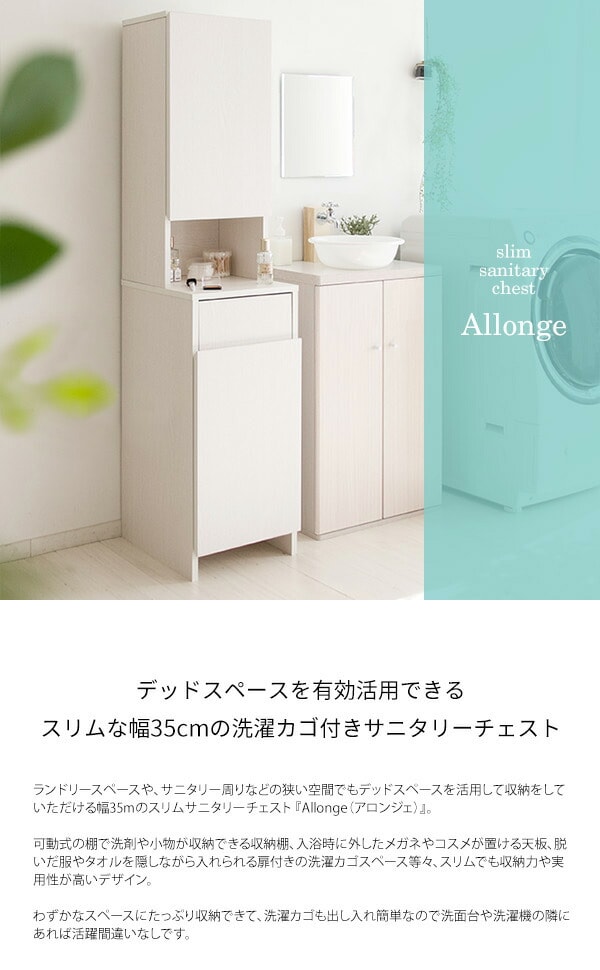 サニタリーチェスト Allonge(アロンジェ) 幅35cm ランドリー収納 すき間収納 ランドリーラック ランドリーチェスト サニタリー収納 サニタリーラック 洗面所収納【送料無料】