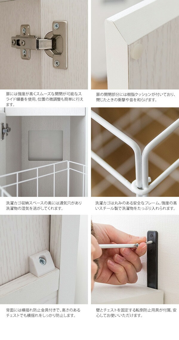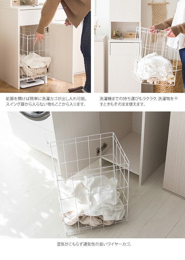 わずかなスペースにたっぷり収納できて、洗濯カゴも出し入れ簡単なので洗面台や洗濯機の隣にあれば活躍間違いなしです。