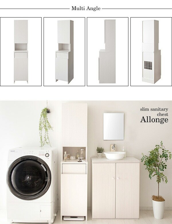 ランドリースペースや、サニタリー周りなどの狭い空間でもデッドスペースを活用して収納をしていただける幅35mのスリムサニタリーチェスト 『Allonge(アロンジェ)』。