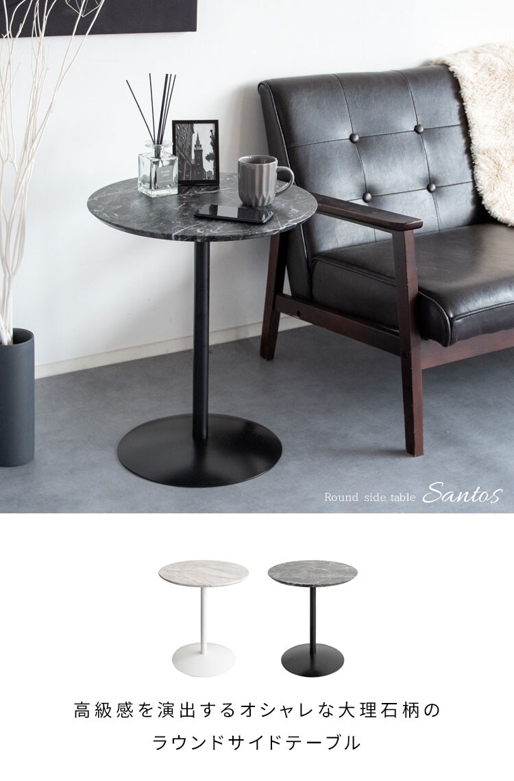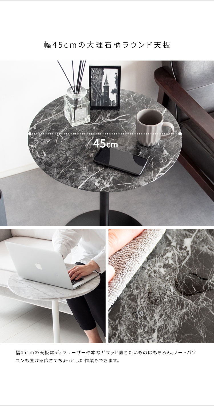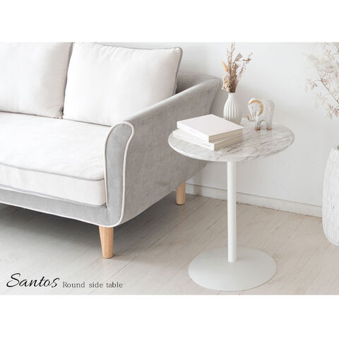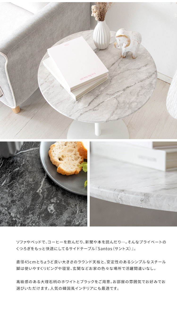 大理石柄サイドテーブル ラウンドテーブル 天板幅45cm 大理石柄 シンプル テーブル Santos サントス 高級感 韓国風 ベット横 ソファ横 デスクサイド ST-019D_WH ローテーブル おしゃれ ナイトテーブル【送料無料】
