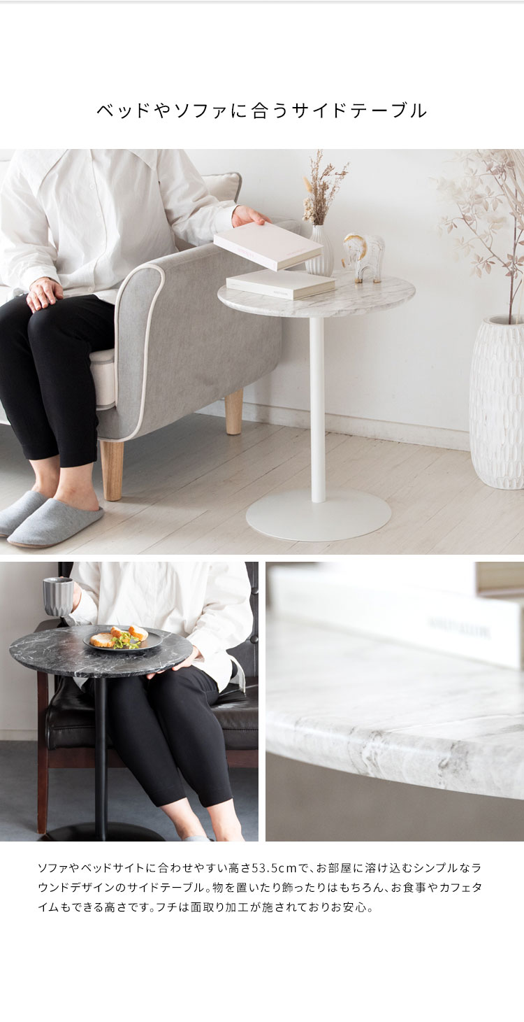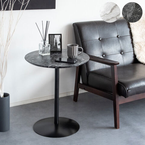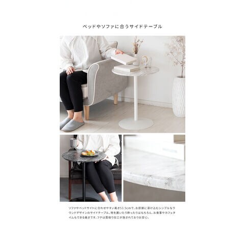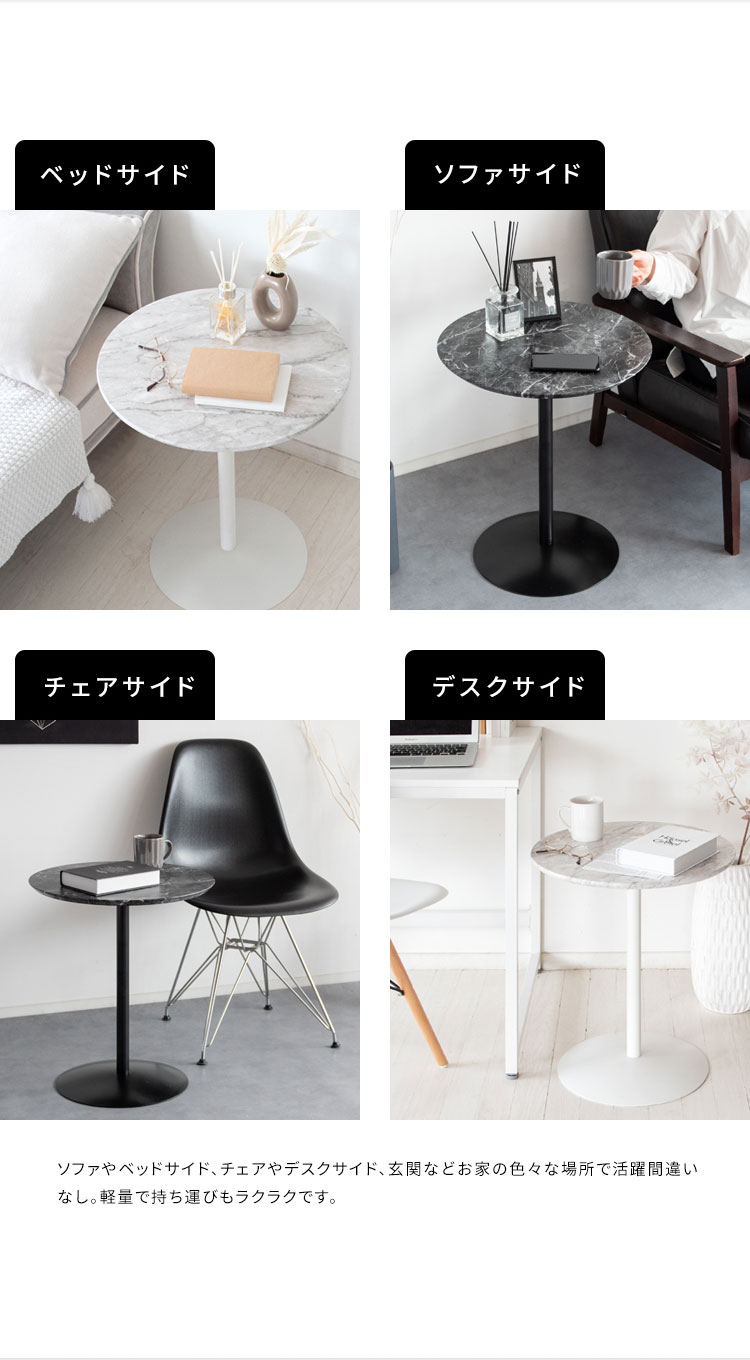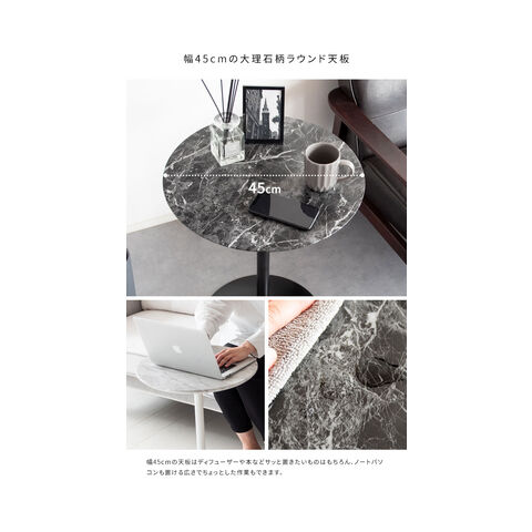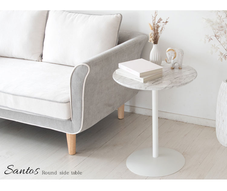 大理石柄サイドテーブル ラウンドテーブル 天板幅45cm 大理石柄 シンプル テーブル Santos サントス 高級感 韓国風 ベット横 ソファ横 デスクサイド ST-019D_WH ローテーブル おしゃれ ナイトテーブル【送料無料】