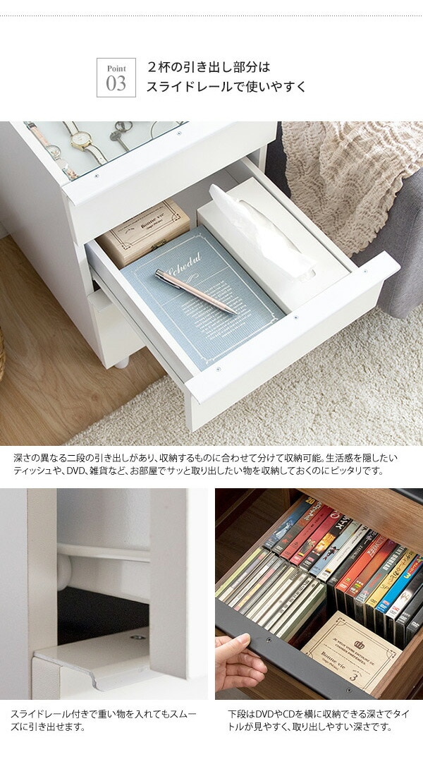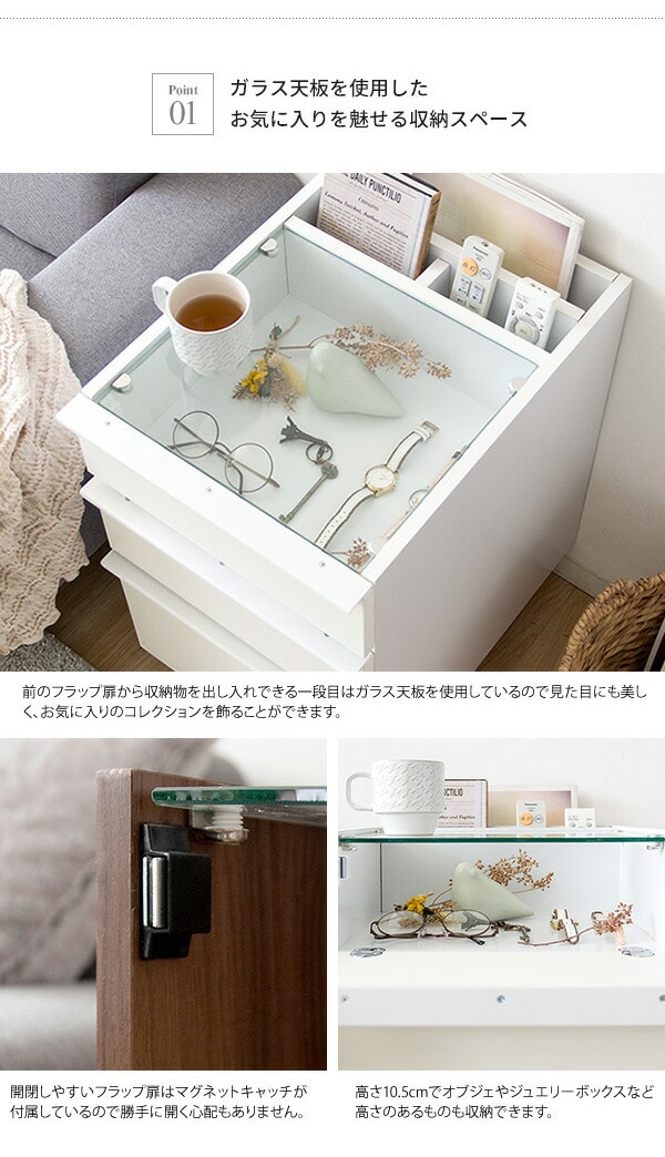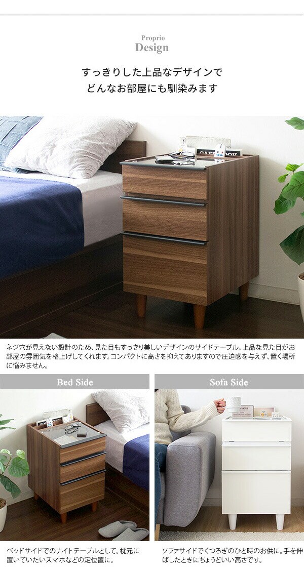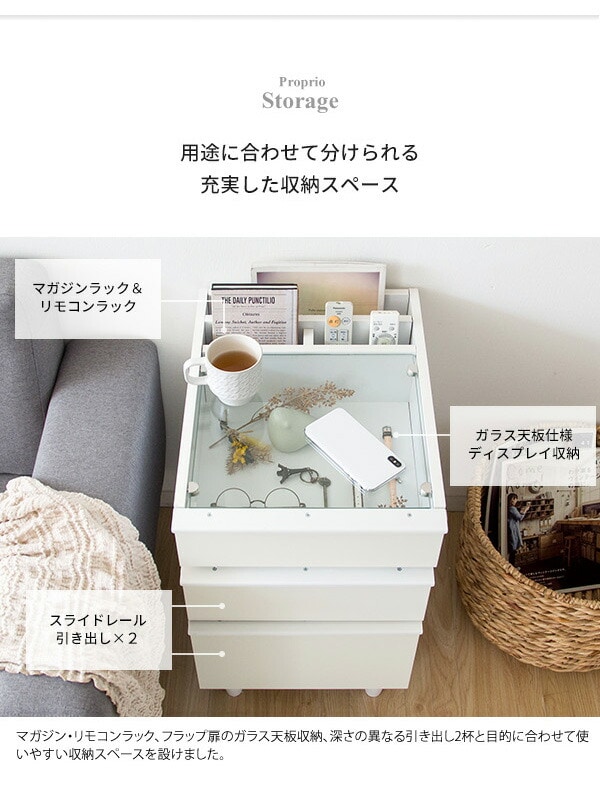 サイドラックテーブル Proprio(プロプリオ)チェスト ガラストップ マガジン・リモコンラック サイドテーブル ナイトテーブル【送料無料】