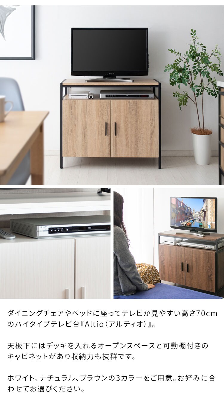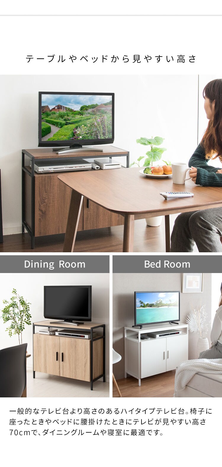 ダイニングチェアやベッドに座ってテレビが見やすい高さ70cmのハイタイプテレビ台。