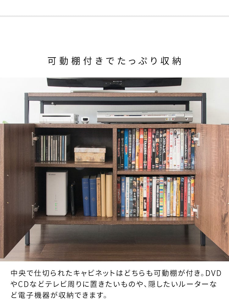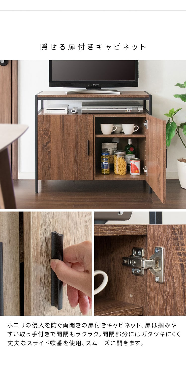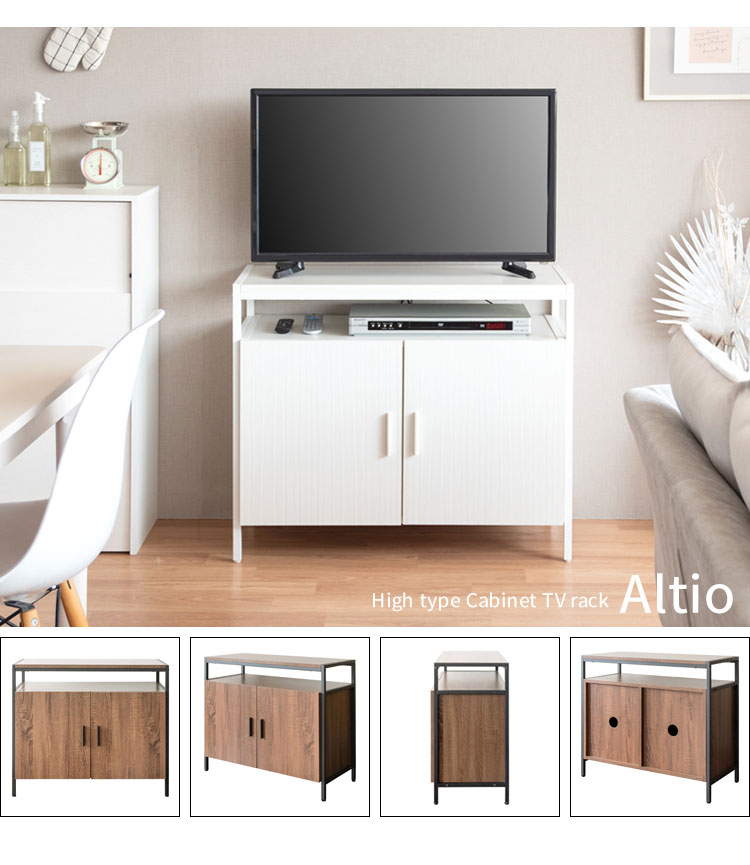 テレビ台 TVラック キャビネット 32型 高さ70 幅80 ハイタイプ TV台 サイドボード コード穴 可動棚 木目調 大容量 ダイニング 寝室 一人暮らし 省スペース スチール ブラウン ホワイト【送料無料】