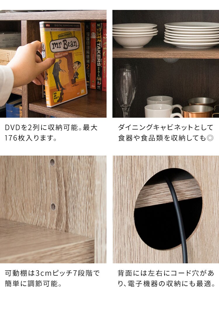 天板下にはデッキを入れるオープンスペースと可動棚付きのキャビネットがあり収納力も抜群です。
