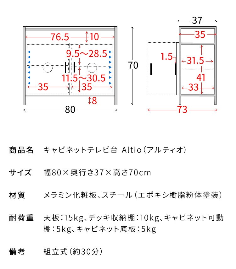 幅80×奥行き37×高さ70cm