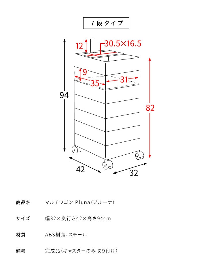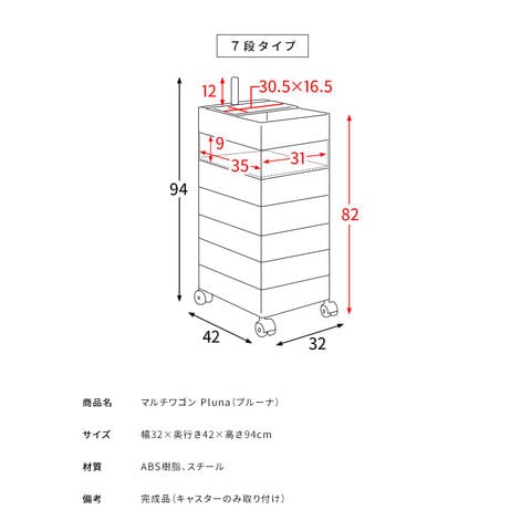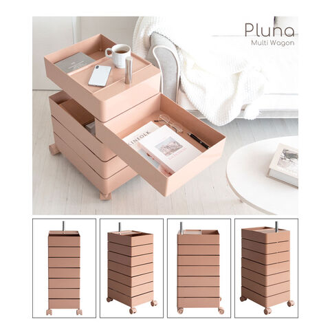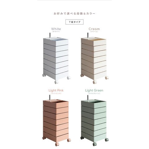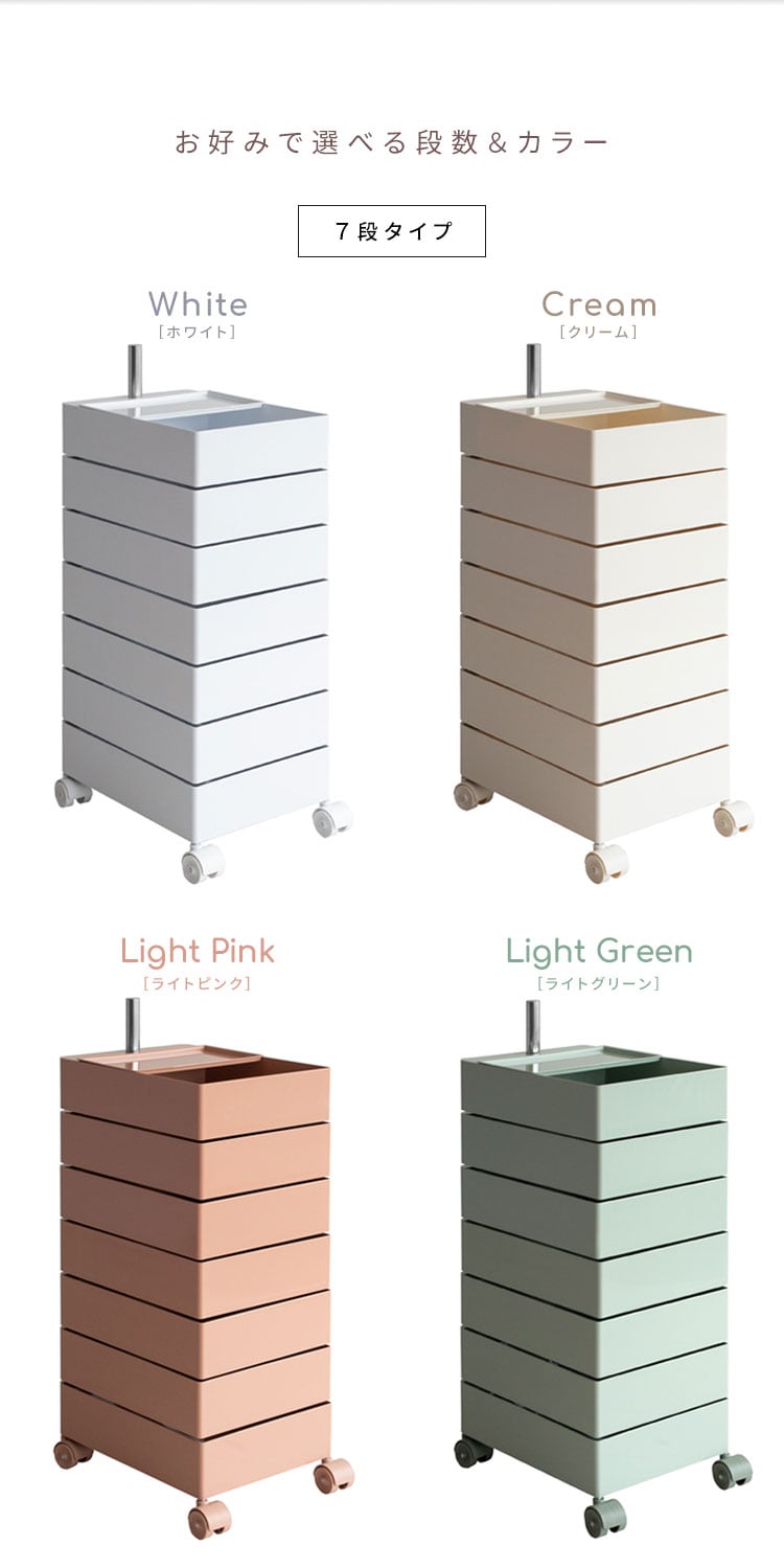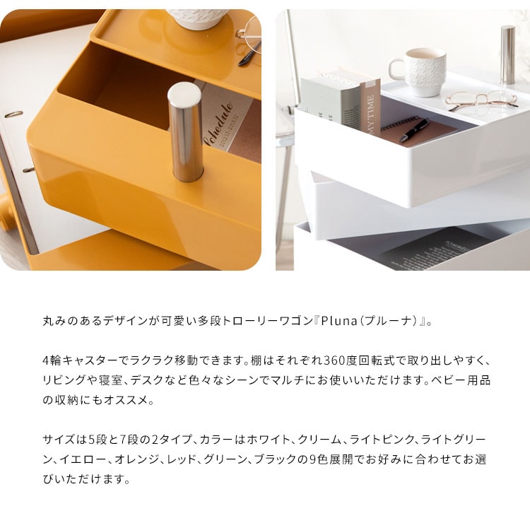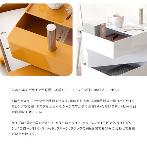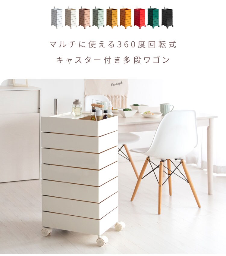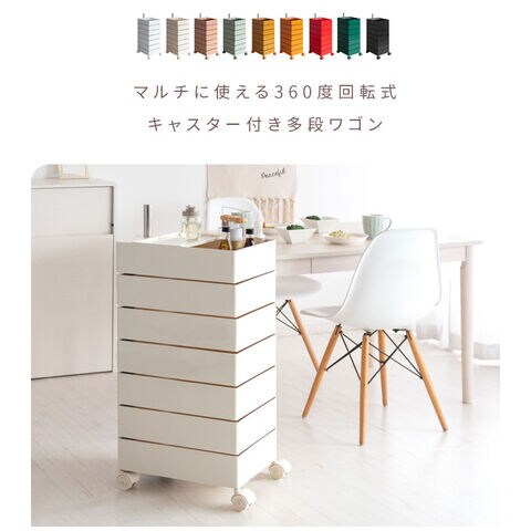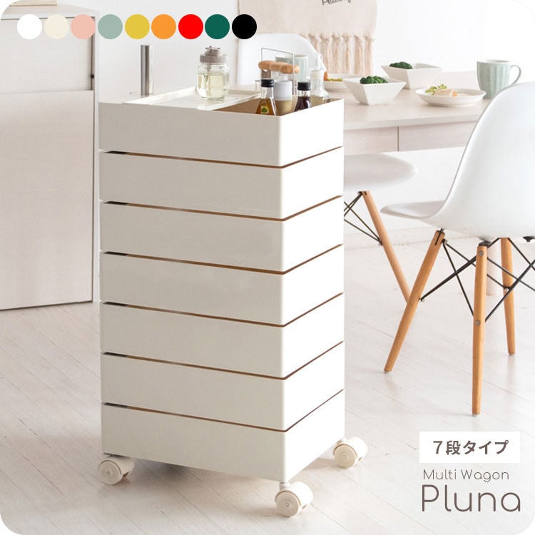 マルチワゴン Pluna プルーナ 7段 360度回転 スリムサイズ リビング キッチン 子ども部屋 コスメ収納 玄関 寝室 ランドリー キャスター付き かわいい 収納ワゴン ワゴン収納 多段ワゴン チェスト デスクワゴン リビングワゴン サイドラック【送料無料】