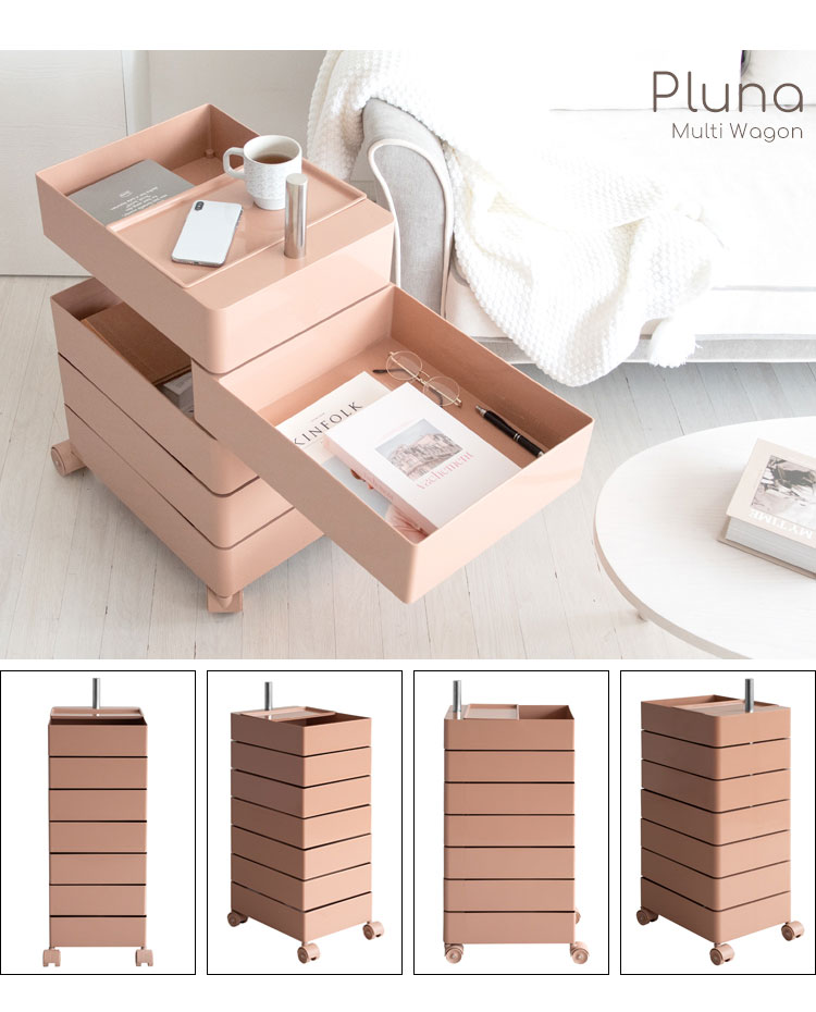 丸みのあるデザインが可愛い多段トローリーワゴン『Pluna(プルーナ)』。