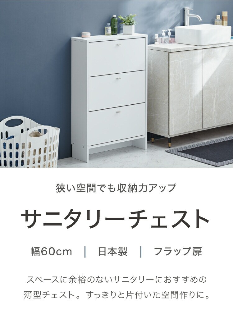 日本製 サニタリーチェスト 奥行20cm フラップタイプ 薄型 すき間収納 サニタリーすき間チェスト ランドリー 棚 ラック チェスト ランドリー収納 スマート コンパクト 国産 おしゃれ かわいい【送料無料】