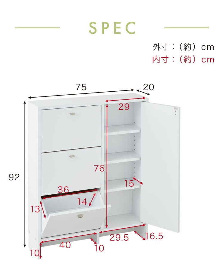 扉収納部内寸:幅29×奥行15×高さ76cm