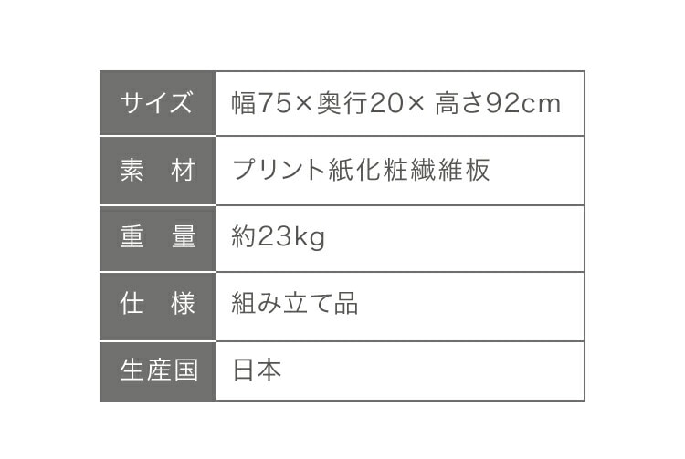 本体:幅75×奥行20×深さ92cm