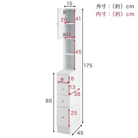 引き出し内寸:幅8×奥行38× 深さ(小)8(中)13(大)13(有効内寸25cm)