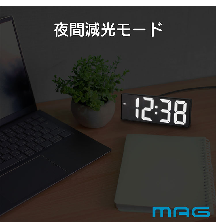 MAG マグ 置き時計 インテリア おしゃれ シンプル 小型 デジタル LED 光る 見やすい USB Type-C 給電 ブラック フラットアワー T-785 BK-Z ノア精密【ポイント10倍】 【送料無料】のレビュー