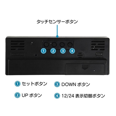 機能時刻表示、12/24時間表示切替、夜間自動減光、(電池使用時)スリープモード/タッチセンサー