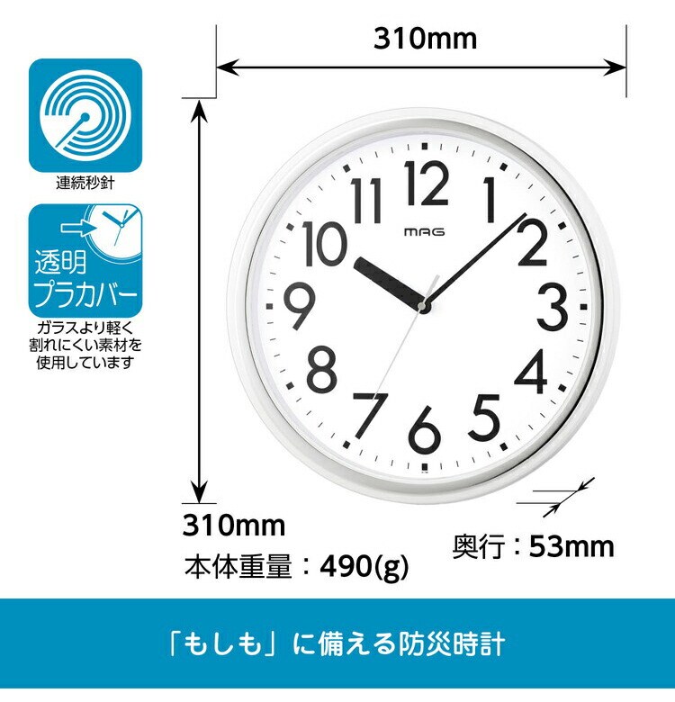 MAG掛時計 プラターフ MAG マグ 時計 掛け時計 掛時計 おしゃれ オシャレ インテリア アナログ時計 アナログ 軽くて壊れにくい 防災時計 防災 W-798 WH-Z【ポイント10倍】