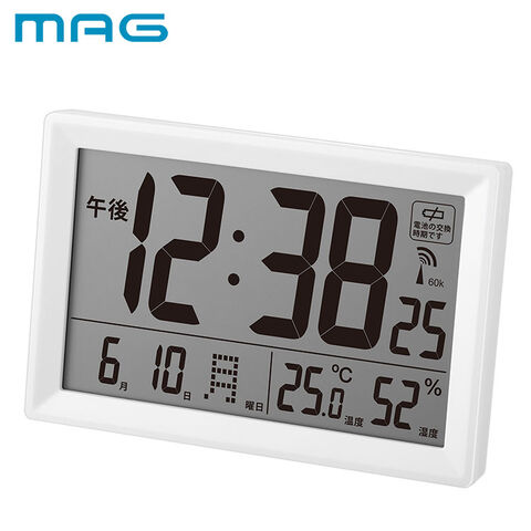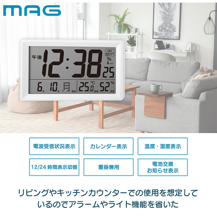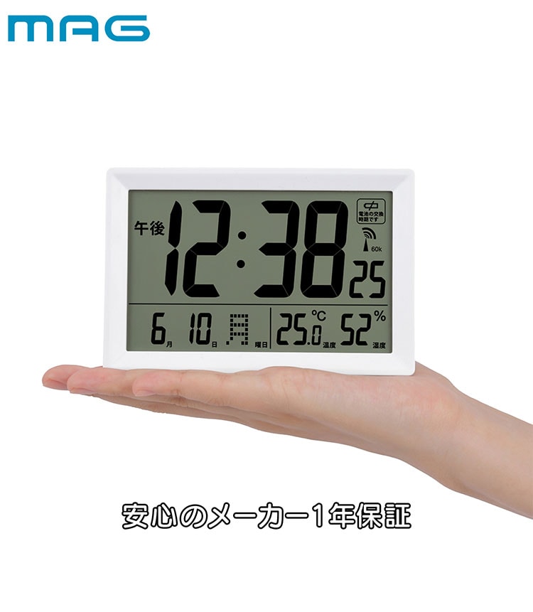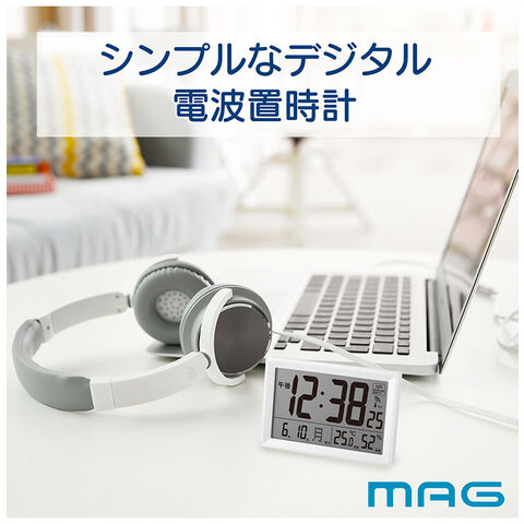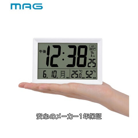 MAG 置き時計 デジタル 電波時計 温度計 湿度計 温湿度計 シンプル インテリア リビング カウンター 置き掛け兼用 縦約9.0×横約14cm ホワイト ビュースクエア W-812 WH-Z ノア精密【ポイント10倍】 【送料無料】