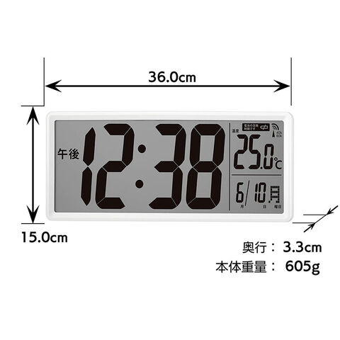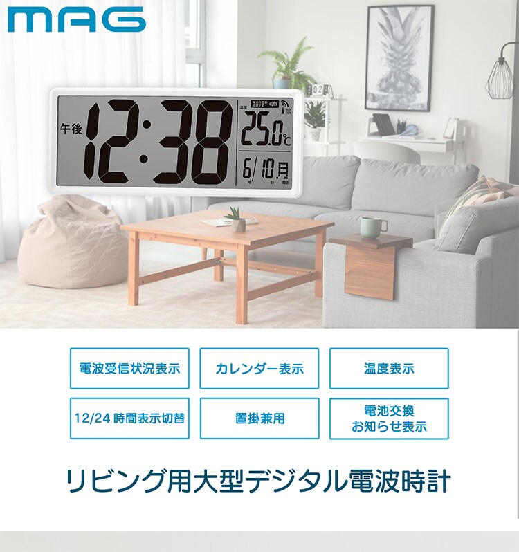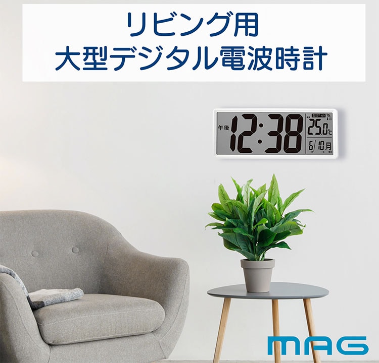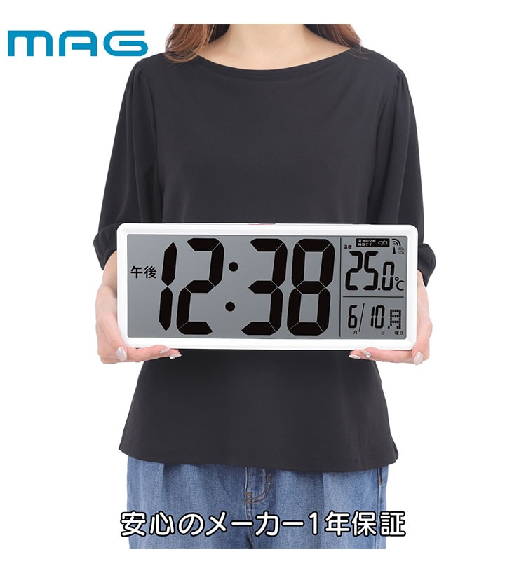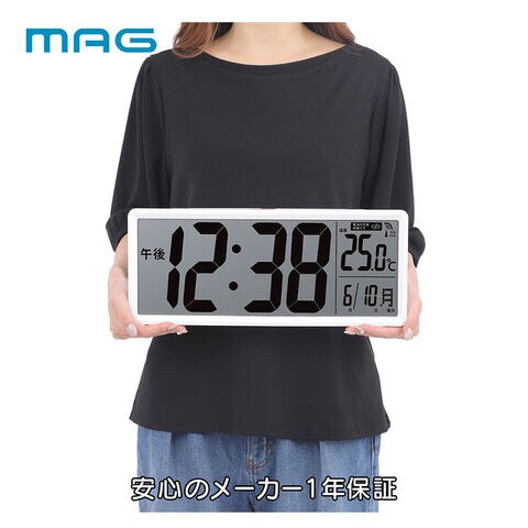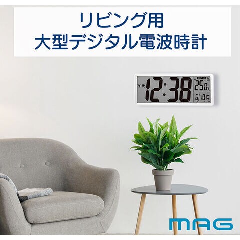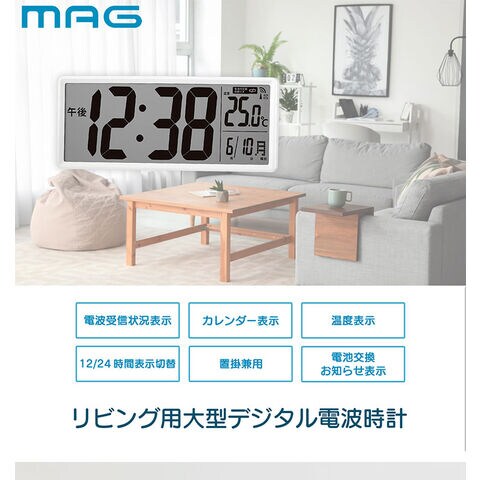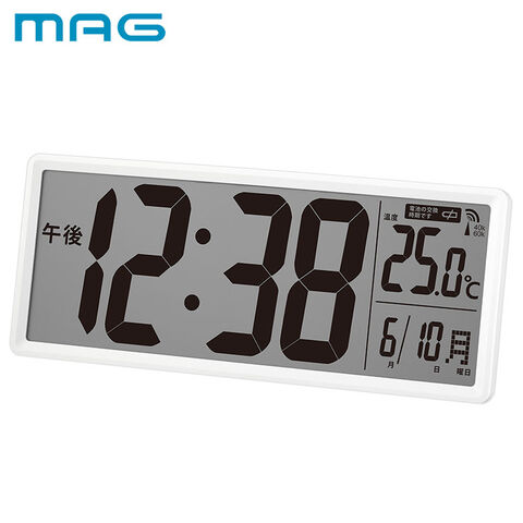 MAG 掛け時計 壁掛け時計 置き時計 デジタル 電波時計 温度計 シンプル インテリア リビング カウンター 大型 大きい 15×36cm 置き掛け兼用 ホワイト クリアビュー W-814 WH-Z ノア精密【ポイント10倍】 【送料無料】