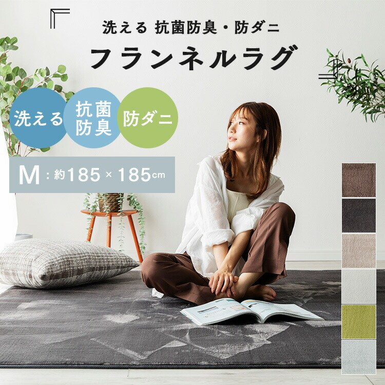 洗える オールシーズン ラグ 185×185 2畳 防ダニ 抗菌防臭 超極細フランネル ラグマット 滑り止め付 マット ラグカーペット 夏 冬 カーペット【ポイント10倍】 【送料無料】