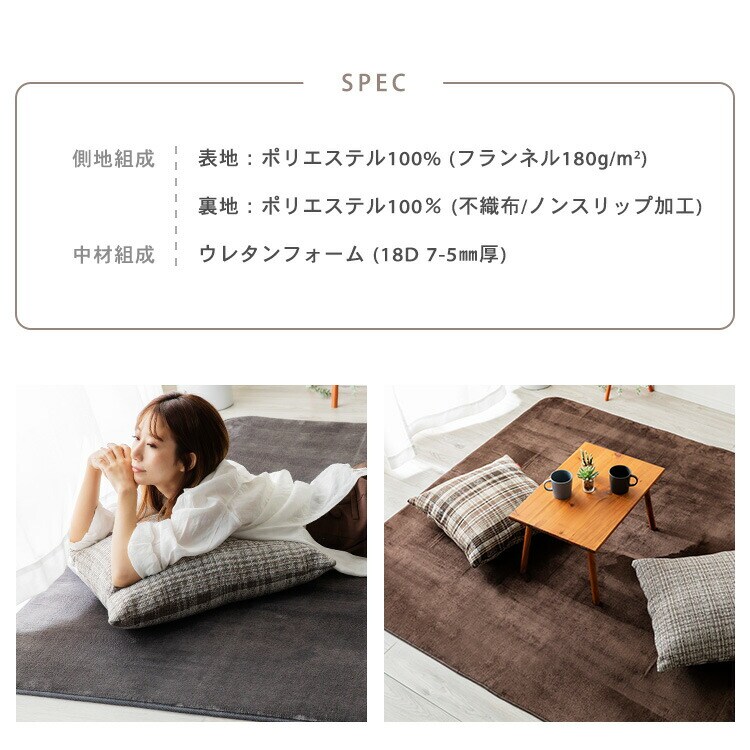 ■ [素材] 表生地:ポリエステル100%(フランネル) 中材:ウレタンフォーム(厚さ約5mm)裏面:ポリエステル100%(不織布、ノンスリップ加工)