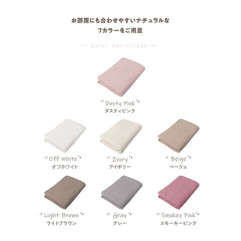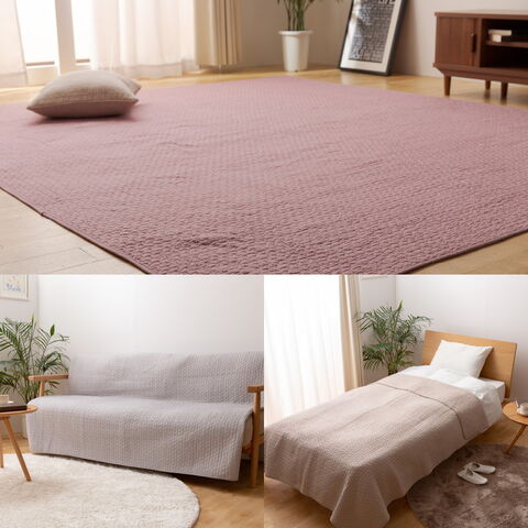 くもの形のキルト加工で、ぽこぽこ感がかわいい綿100%のマルチカバー。さらっとした肌触りで、ケットや、ソファーカバー、ラグカバーなどマルチに活躍。