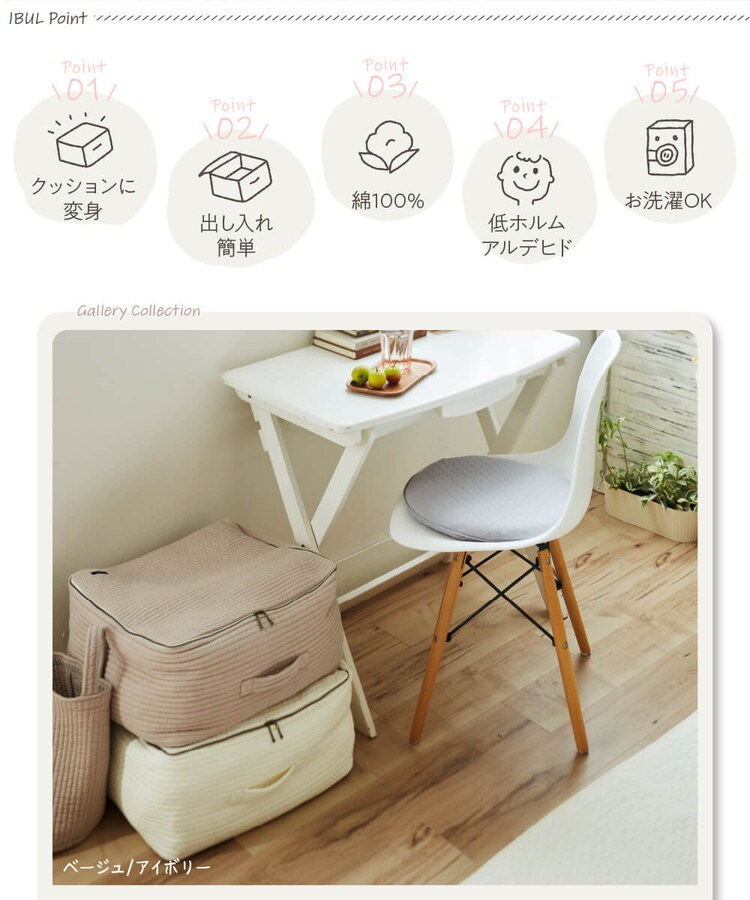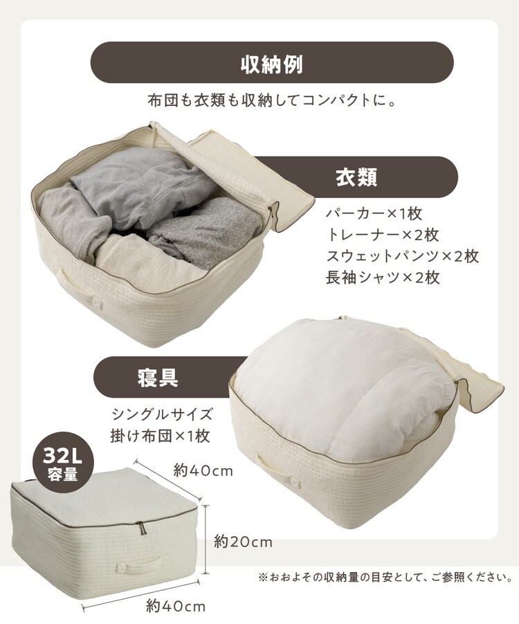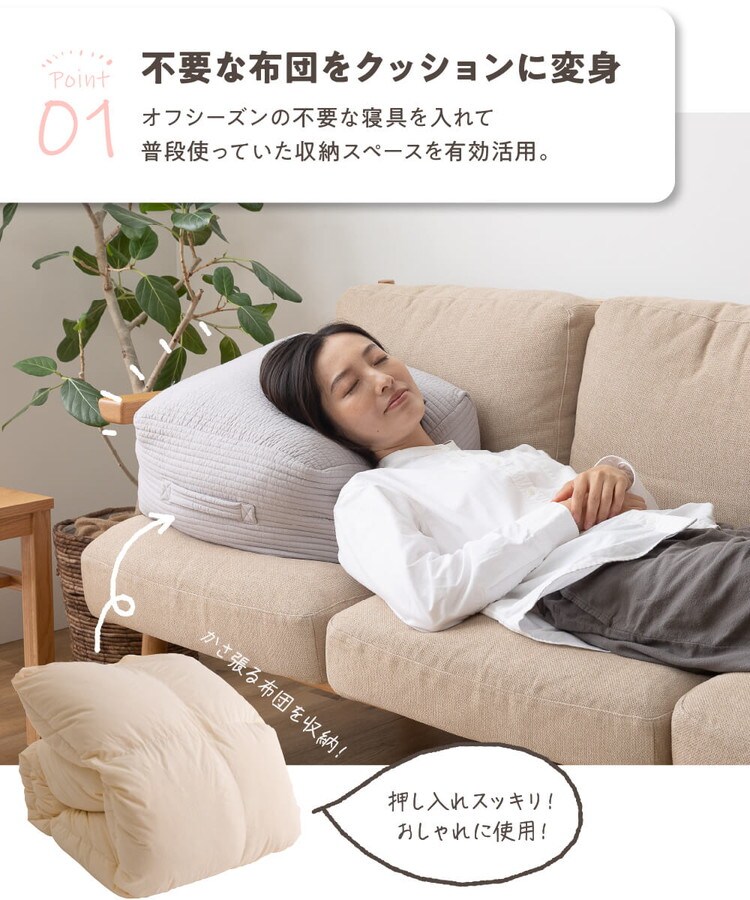 イブル クッションになる布団収納ケース 布団収納袋 32L 綿100% コットン100% 洗える かわいい おしゃれ mofua モフア ギフト プレゼント【送料無料】のレビュー