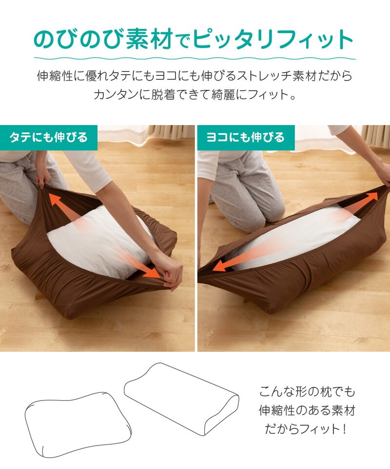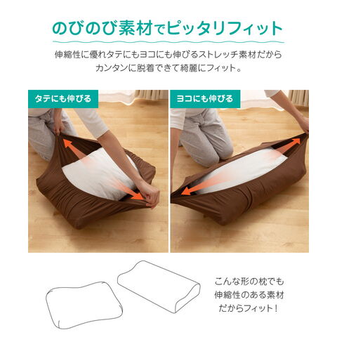 縦にも横にも伸びる3Dストレッチ素材の枕カバー。一般的な43×63cm規格の枕はもちろん、多少凹凸のある枕にもぴったりフィット。