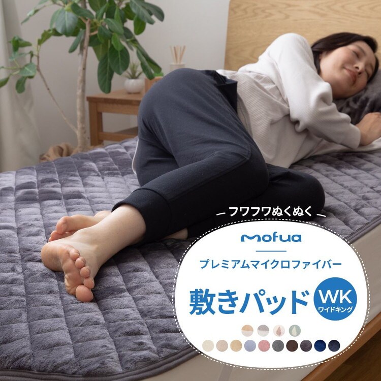 敷きパッド ワイドキング 洗える mofua マイクロファイバー敷パッド 1年保証 3人用 エコテックス 静電気防止 極細繊維 秋冬用 冬 丸洗い 寝具 あったか モフア かわいい あったか ベッドパッド【送料無料】