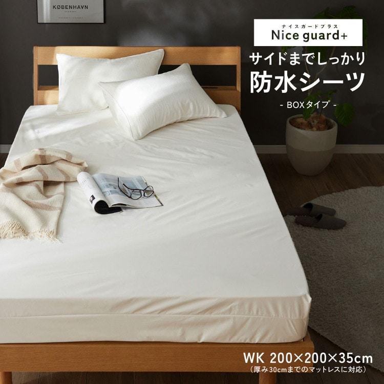 防水 ボックスシーツ ワイドキング WK 200×200cm Nice guard+ サイドまでしっかり防水シーツ 抗菌 防臭 ダニ通過0 マットレスカバー マットレスプロテクター アンダーシーツ ナイスガードプラス【送料無料】