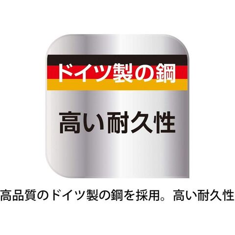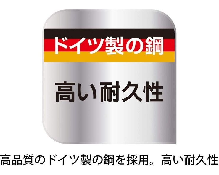 鋼を高温で熱処理した後、-120℃に急冷することで、鋼の硬度が増し、刃 の鋭い切れ味が持続。耐久性が強化され、錆にくくなります。高品質のドイツ製の鋼を採用 高い耐久性を生み出しました。