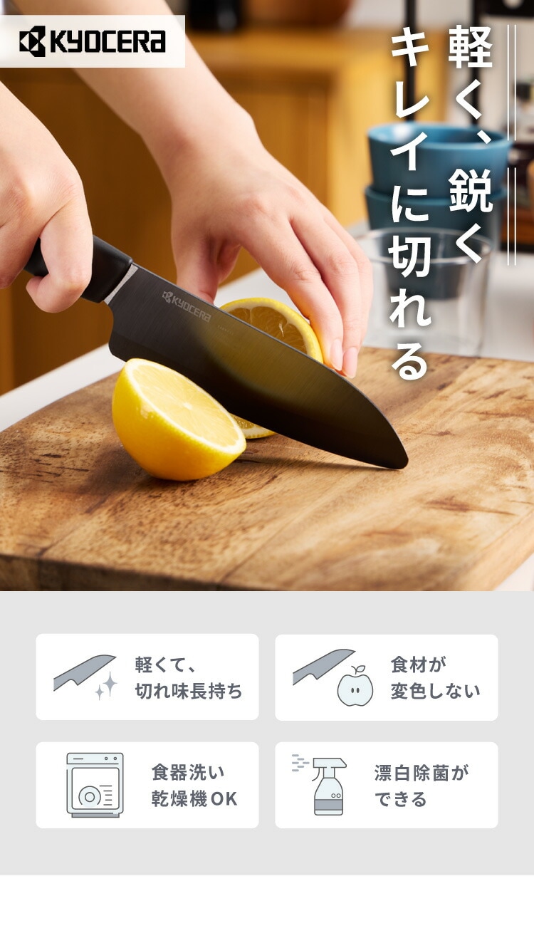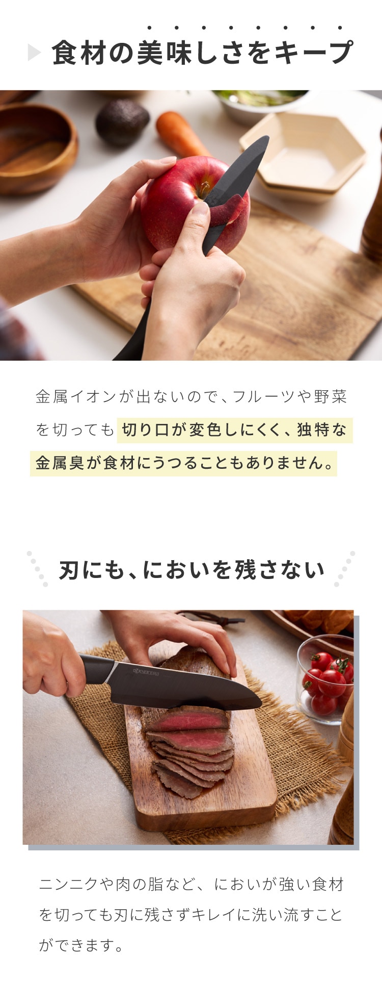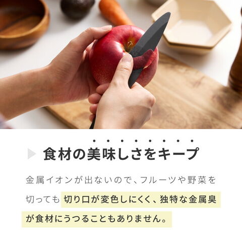 ・金属イオンが出ないので、食材の切り口が変色しにくくキレイ。