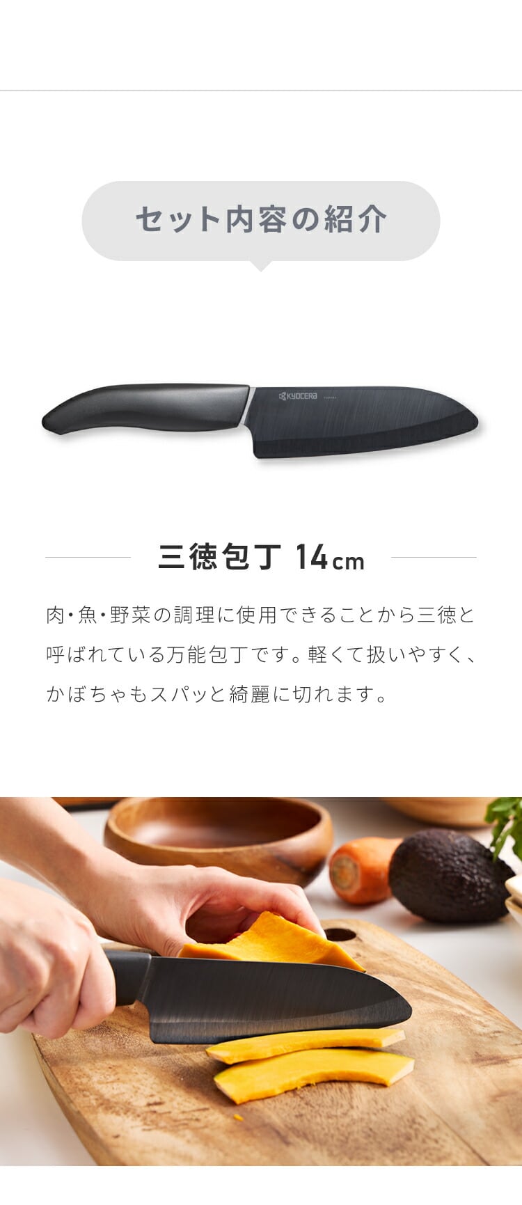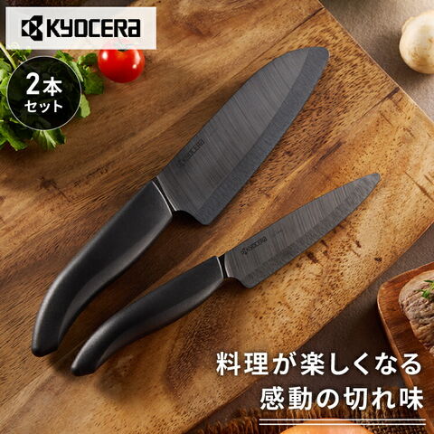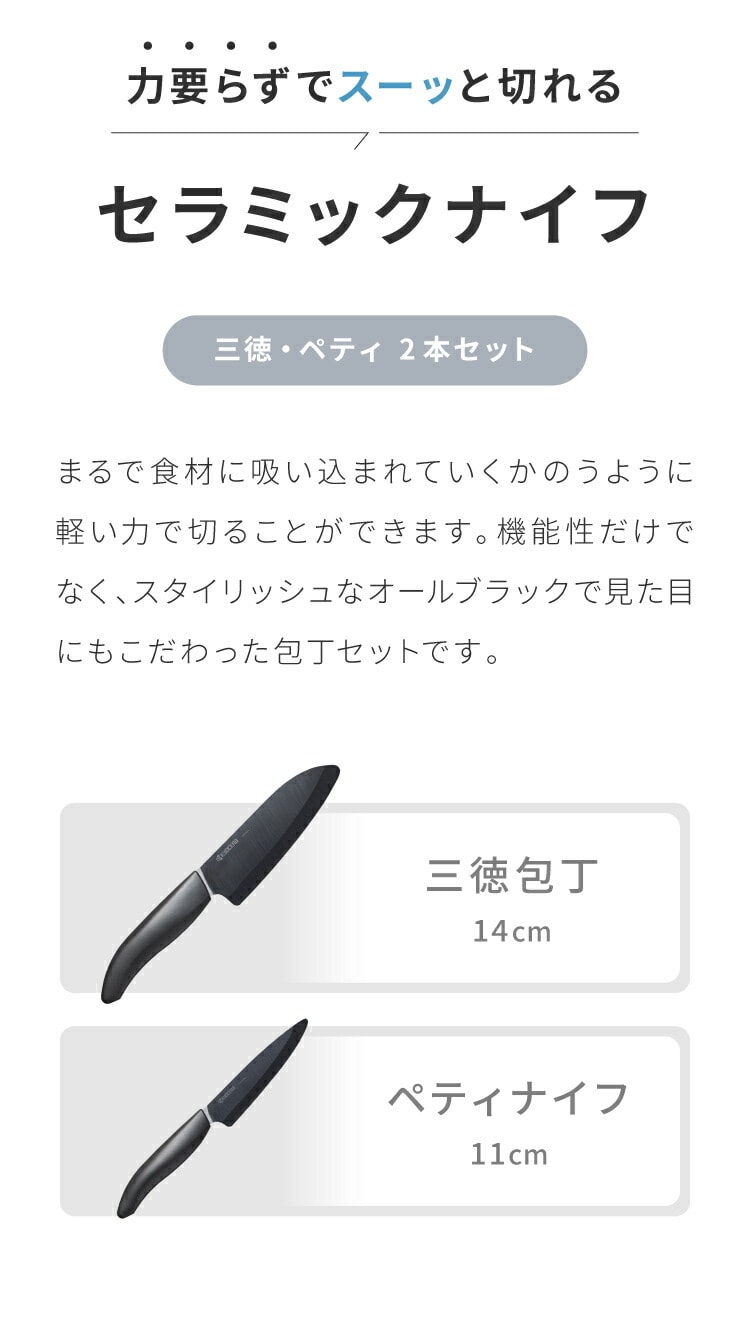 京セラ セラミック包丁 2本セット 11cm&14cm 食洗機対応 漂白OK 包丁 セラミック ナイフセット 三徳包丁 万能包丁 ペティナイフ 黒 ブラック サビない BGF-21114BK-BK KYOCERA【送料無料】
