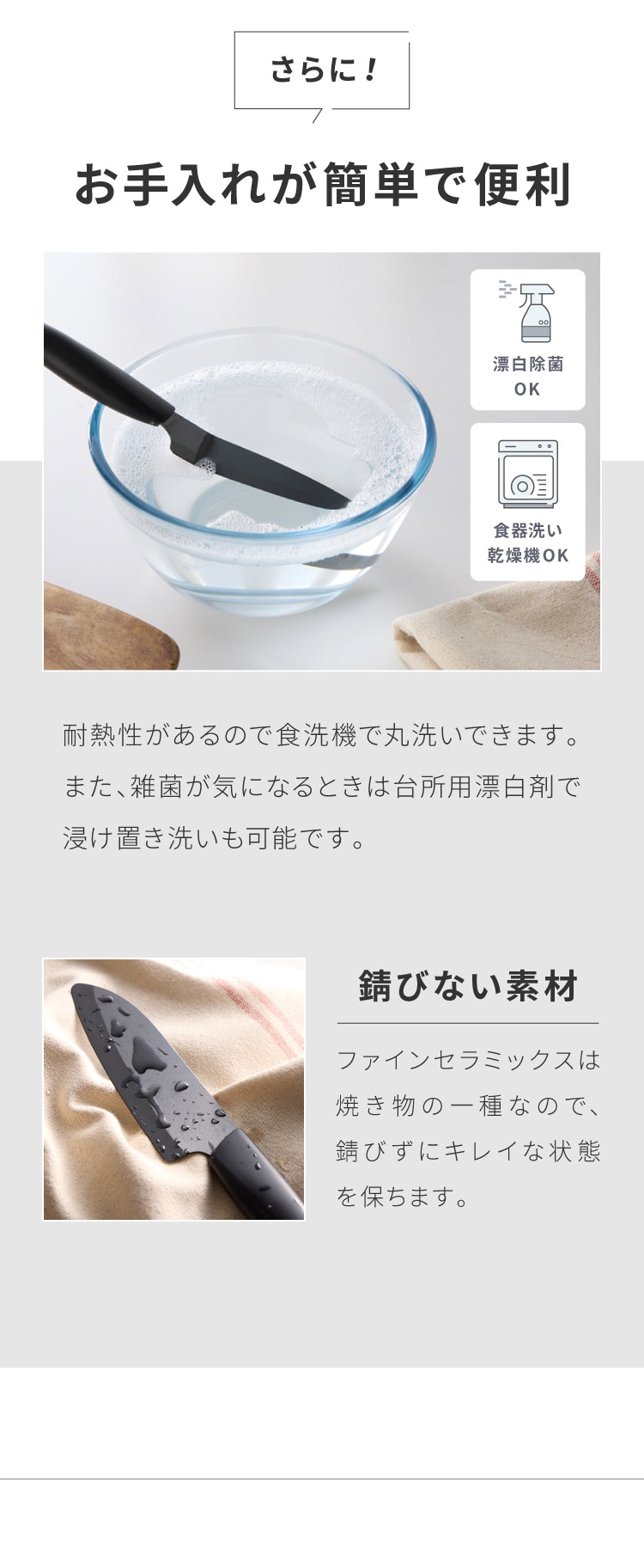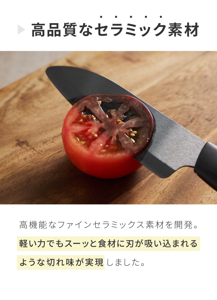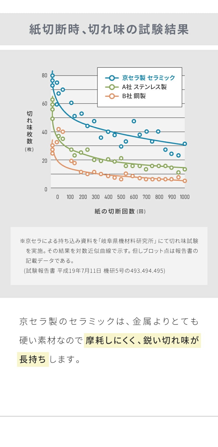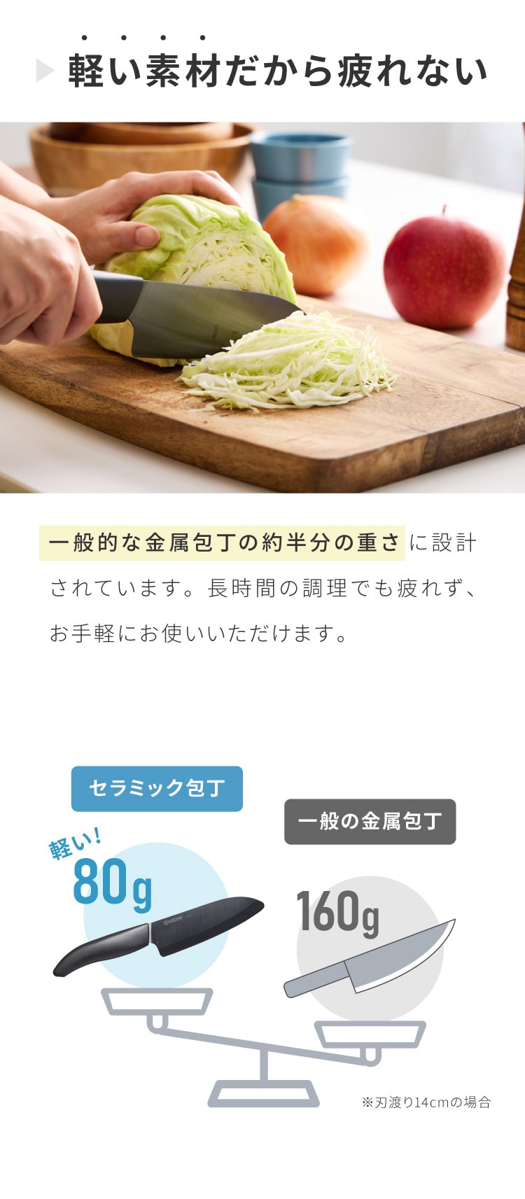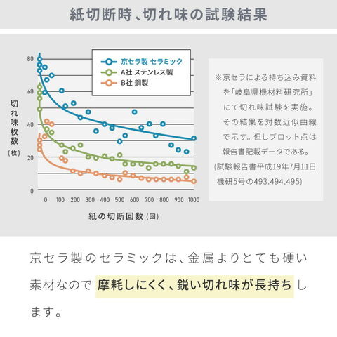 ・金属よりも非常に硬いので、摩耗しにくく鋭い切れ味が長持ち。