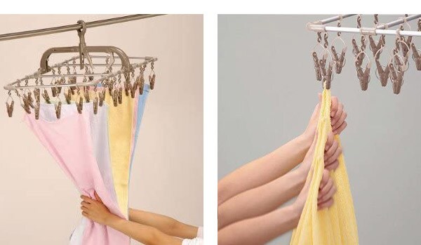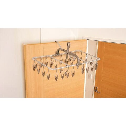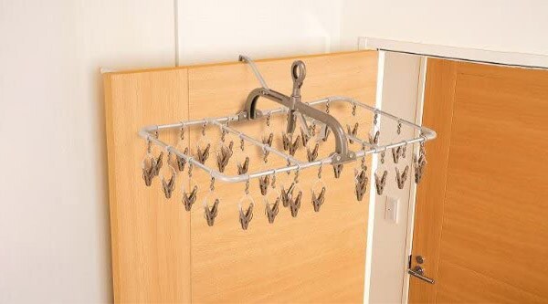 内蔵フックを使えばドアや鴨居に掛けられ室内干しに最適