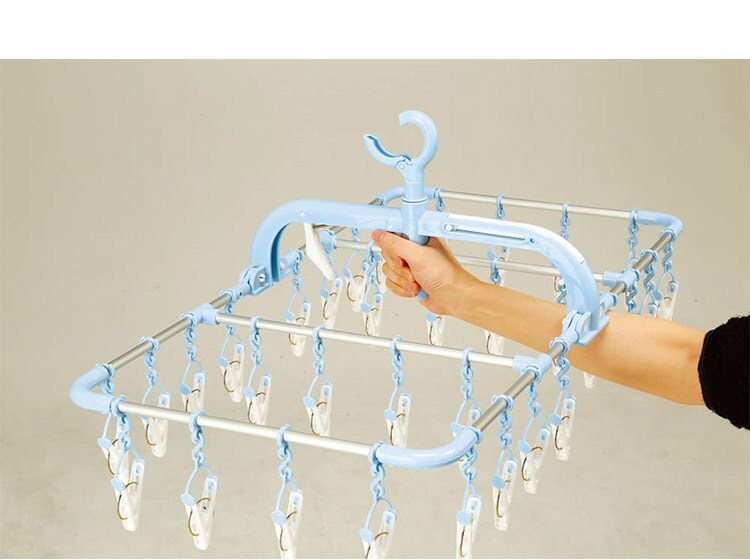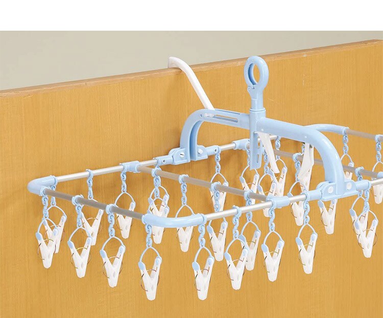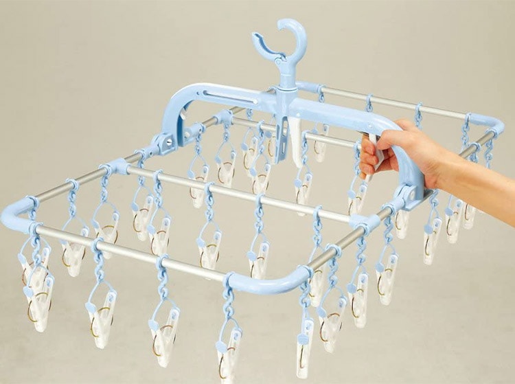 ドア等に掛けられるフック付きなので、室内干しに便利です