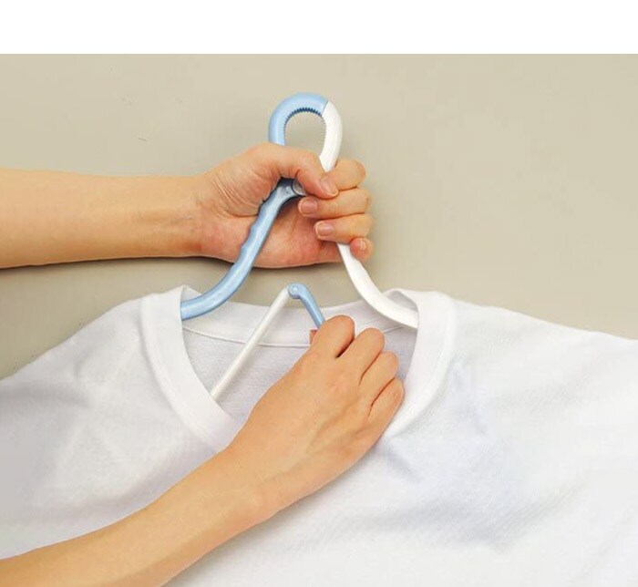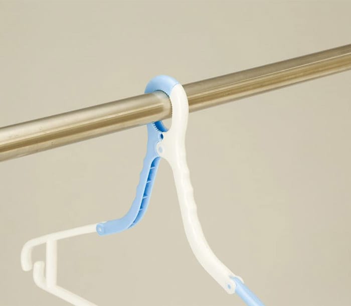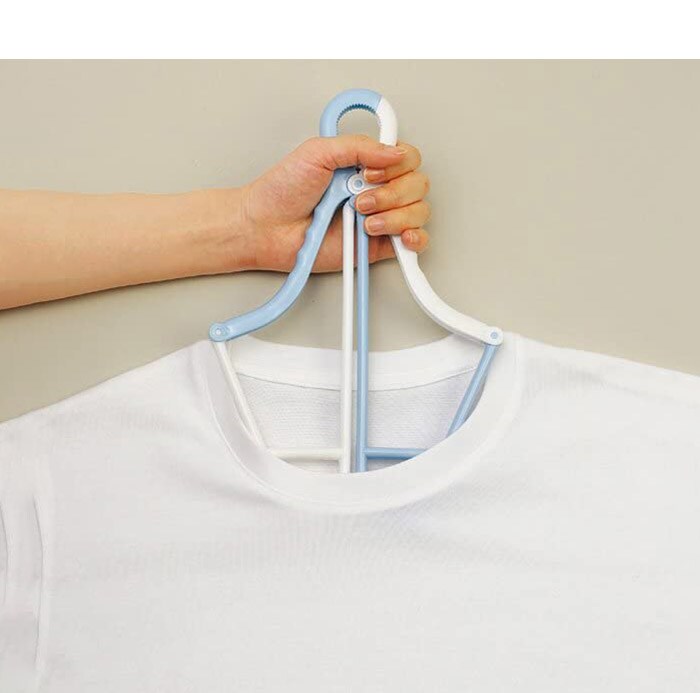ハンガーのアームが折りたためるので丸首や細い首のシャツがラクに通せます
