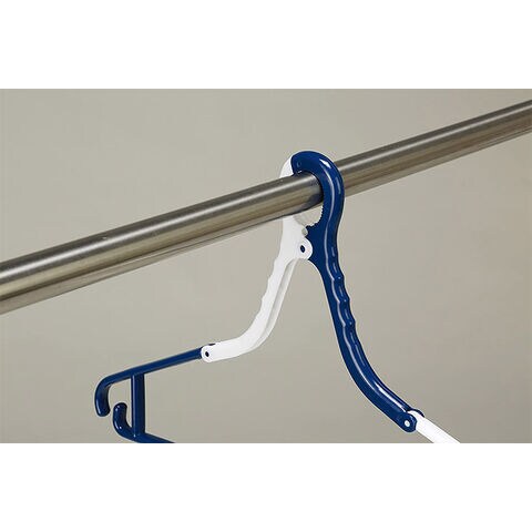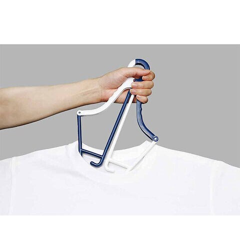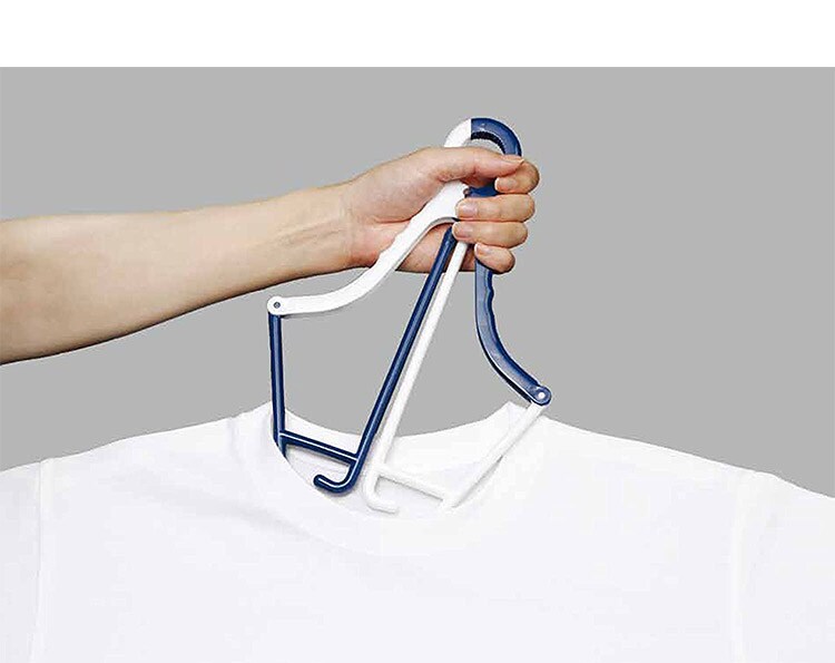 ハンガーのアームが折りたためるので丸首や細い首のシャツがラクに通せます