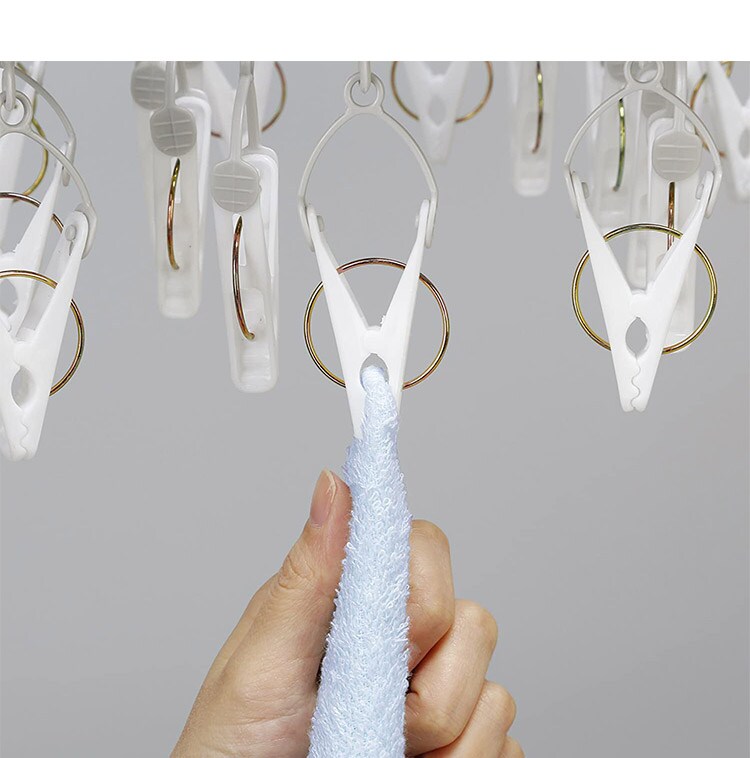 ドア等に掛けられるフック付きなので、室内干しに便利です