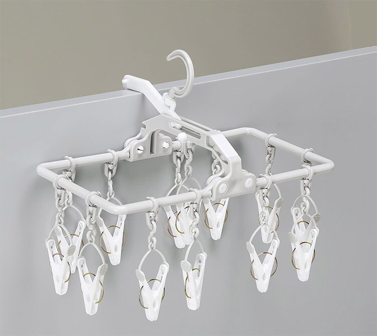 ドア等に掛けられるフック付きなので、室内干しに便利です