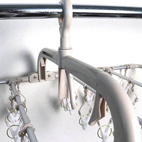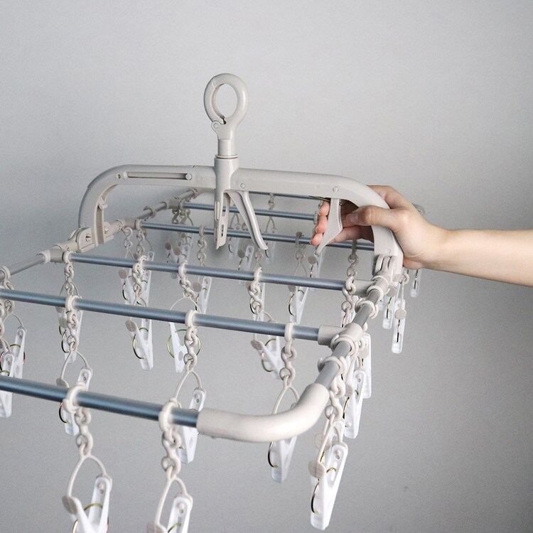 ドアなどに掛けられるフック付きで、室内干しにも便利です。