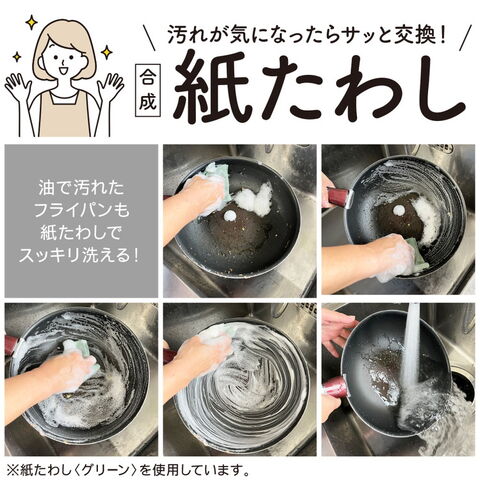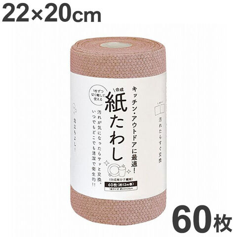 食器洗いシート 紙たわし ピンク 22cm×20cm 60枚(約12m巻)