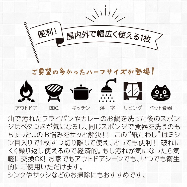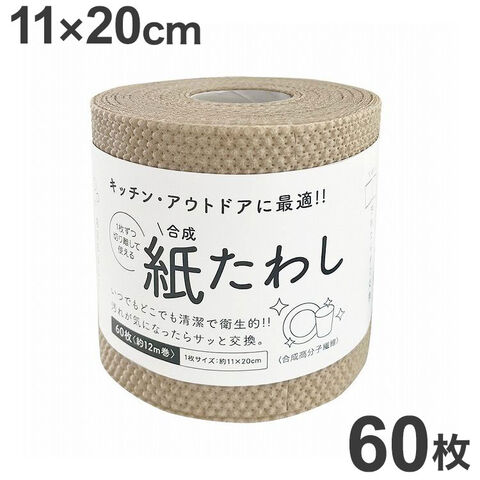 食器洗いシート 紙たわし ハーフ ベージュ 11cm×20cm 60枚(約12m巻)