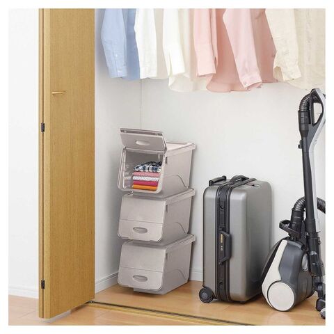 収納、ボックス、ケース、小物、かご、棚、プラスチック、スタッキング、積み重ね、フタ、ふたつき、蓋付、キャスター、キッチン、リビング、シンク、日本製、洗面、サニタリー、ベージュ、グレー、ストッカー