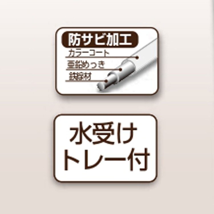 本体:鉄(エポキシ樹脂塗装) 水受けトレー:ポリプロピレン(耐熱温度100度)