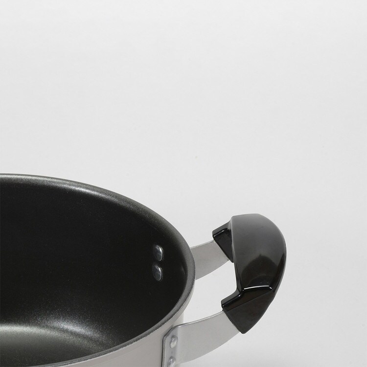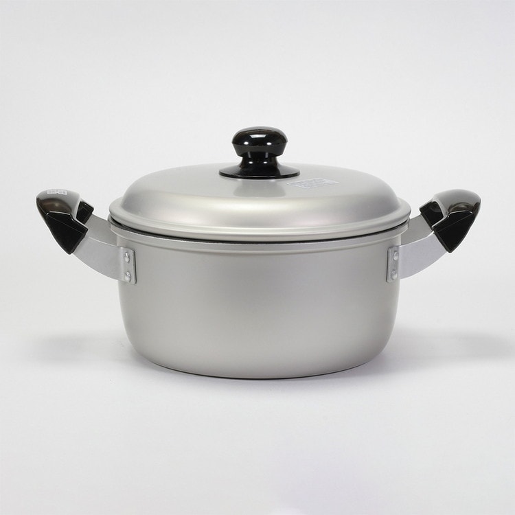 ■材質本体/アルミニウム合金、内面/ふっ素樹脂塗膜加工、外面/アルマイト加工、蓋/アルミニウム合金、取っ手・蓋つまみ・座板/フェノール樹脂(耐熱温度150度)