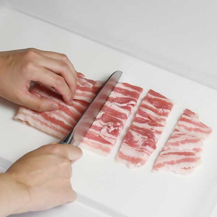 シートを使えばまな板が汚れない!臭い移り・色移りを防止。凸凹加工で滑りにくく切りやすい。色移りやにおい移りが気になる食材に最適。使い捨てタイプで肉や魚のカットも衛生的。カットした食材をそのまま持ち上げて移し替えも簡単!抗菌加工で細菌の増殖を防ぎます。LD-459 抗菌まな板シート ロールタイプ 24cm×3m 詰め替え用です。そのままご使用の場合、ハサミで切ってご使用ください。